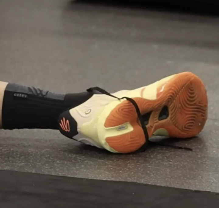 就库里上脚的有CurryBrandlogo的球鞋,有媒体猜测,这双鞋大概率是安踏为其提供的PE专属鞋款,重点在于积极传递品牌合作诚意。而库里在公开场合穿了这双鞋,也可能是他的诚意。
