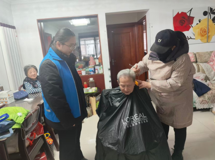 今年90岁的张爷爷,因腿脚不便常年无法出门,“理发”成了他每季的烦心事。此前网格员季然冰在日常走访中得知这一情况后,立即联系理发志愿者东方汇赢,提前和张爷爷约好上门时间,还特意让有理发经验的志愿者准备了温和的剪刀、柔软的围布,连清理碎发的小刷子都细心备好。
