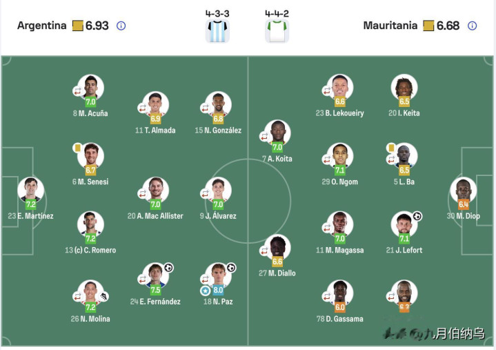 此外,恩佐・费尔南德斯(7.5 分)、马丁内斯(7.2 分)、罗梅罗(7.2 分)等球员也贡献了稳定发挥;毛里塔尼亚方面,恩戈姆与勒福尔均拿到 7.1 分,成为球队表现最佳的球员。